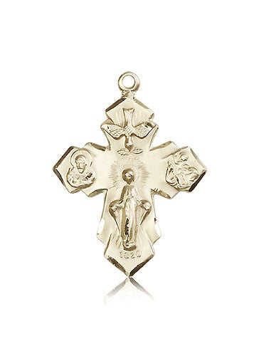 This 4 Way Cross Pendant is made of 14 Karat Gold. The jewelry pendant is sold as pictured and does not come with a chain. All medals are gift boxed in a light blue velvet jewelry box ready for gift giving.