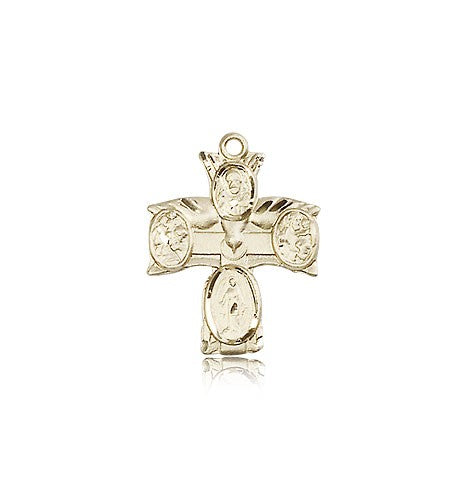 4 Way Cross Pendant, 14 Karat Gold - 14 KT Yellow Gold