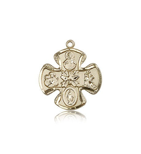 This 5 Way Cross Pendant is made of 14 Karat Gold. The jewelry pendant is sold as pictured and does not come with a chain. All medals are gift boxed in a light blue velvet jewelry box ready for gift giving.
