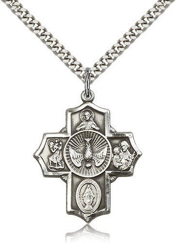 Men's Sterling Silver 5 Way Cross with Dove Pendant