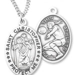 Girl's Oval Double-Sided Volleyball Necklace with Saint Christopher in Sterling Silver - 18" 1.8mm Sterling Silver Chain + Clasp