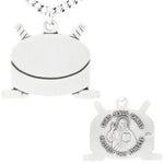 Hockey can get pretty intense! Keep Christ close to your heart wearing this unique hockey necklace designed with two sticks and a puck. On the back is a raised image of Jesus. The back of the pendant reads "LORD JESUS CHRIST PROTECT THIS ATHLETE".