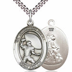 An oval-shaped pendant with an image of a Guardian Angel on one side and a Football player and Glove on the reverse side. There is a selection of chains to choose from.