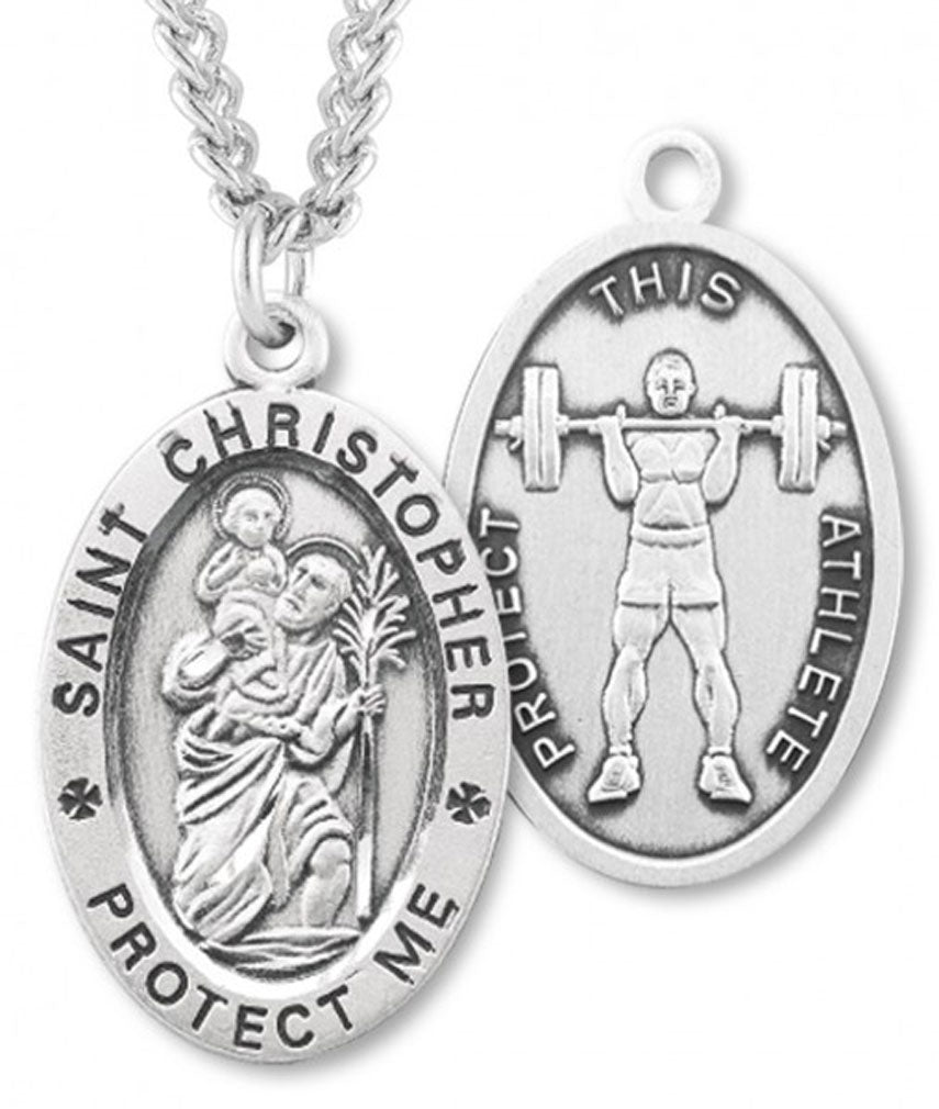 Oval Boy's St. Christopher Weight Lifting Necklace With Chain
