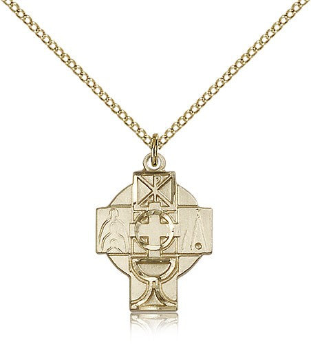 This RCIA Medal is paired with an 18" gold filled light curb chain as pictured. All medals are gift boxed in a light blue velvet gift box ready for gift giving.
