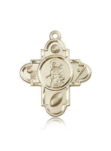 Sports 5 Way Cross St Sebastian Medal, 14 Karat Gold