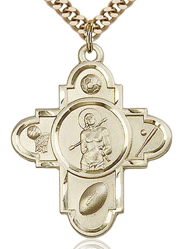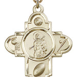 Sports 5 Way Cross St Sebastian Medal, Gold Filled