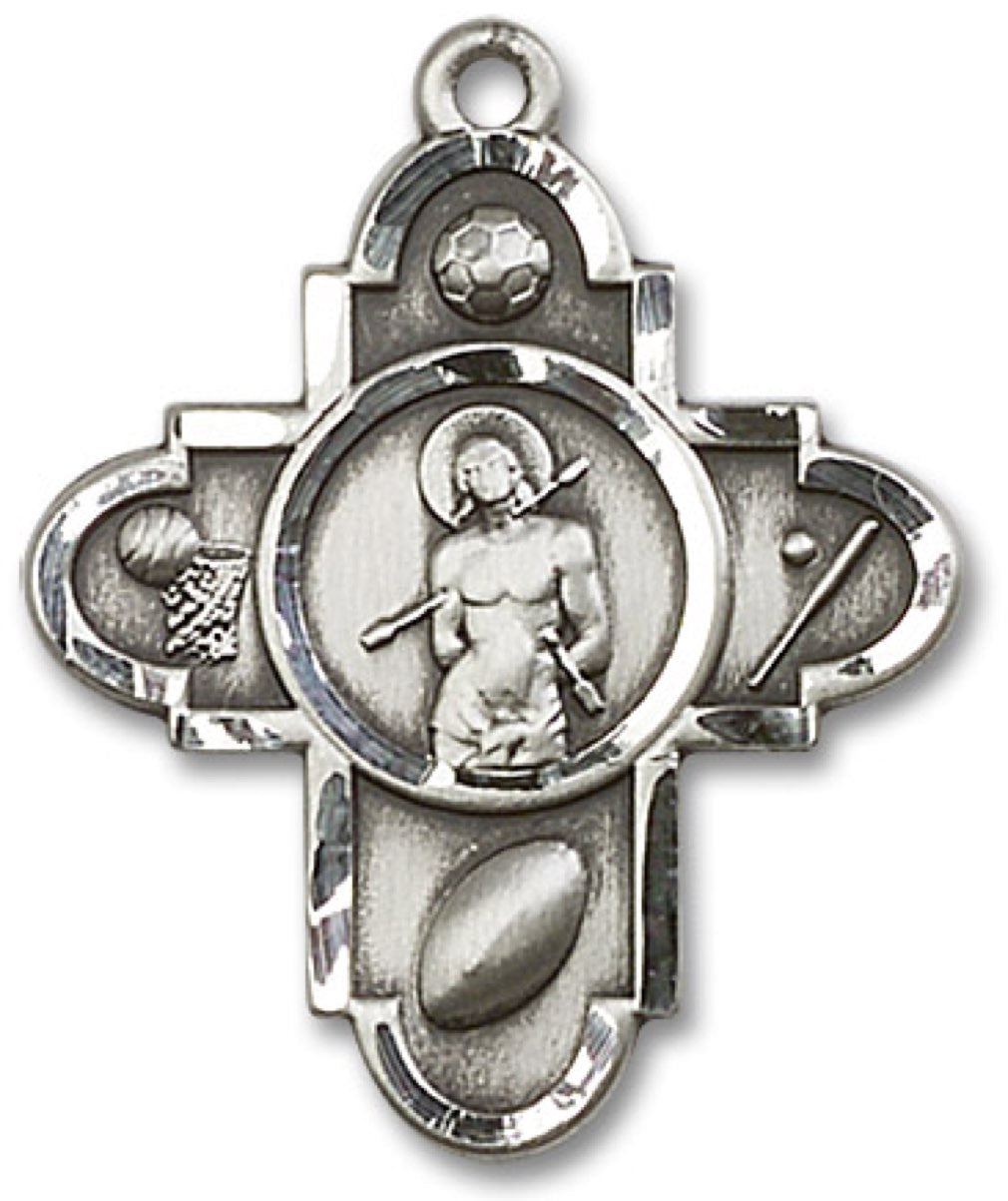Sports 5 Way Cross St Sebastian Medal, Sterling Silver