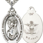 This St. Christopher Oval Army Medal is a great addition to anybody who is in the Army or would like to protect a loved one. The front of the medal depicts an image of St. Christopher with the words around the image reading "Behold St. Christopher and go your way in safety". The back of the medal depicts the U.S Army emblem.