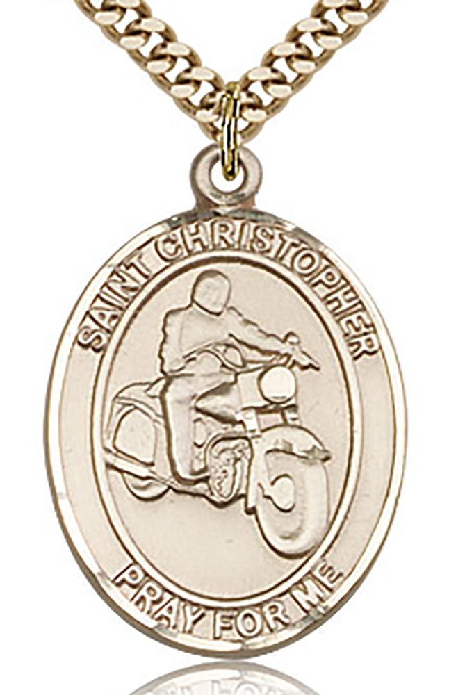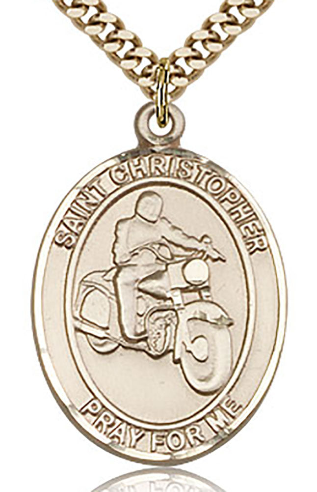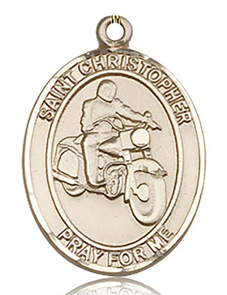 St. Christopher Motorcycle Medal, Gold Filled, Large