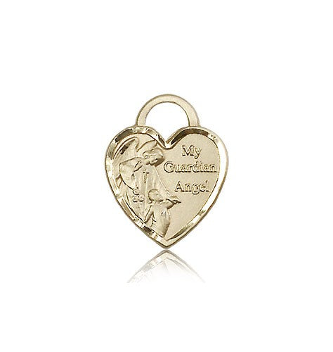 This Guardian Angel Heart Medal is made of 14 Karat Gold. The jewelry pendant is sold as pictured and does not come with a chain. All medals are gift boxed in a light blue velvet jewelry box ready for gift giving.