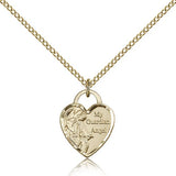 This Guardian Angel Heart Medal is paired with an 18" gold filled light curb chain as pictured. All medals are gift boxed in a light blue velvet gift box ready for gift giving.