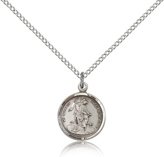 This Guardian Angel Medal is paired with an 18 inch sterling silver lite curb chain as pictured. All medals are gift boxed in a light blue velvet jewelry box ready for gift giving.