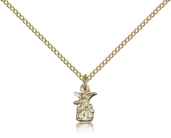 This Littlest Angel Medal is paired with an 18" gold filled light curb chain as pictured. All medals are gift boxed in a light blue velvet gift box ready for gift giving.