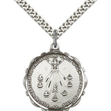 This Seven Gifts Medal is paired with a 24 inch stainless steel heavy curb chain as pictured. All medals are gift boxed in a light blue velvet jewelry box ready for gift giving.
