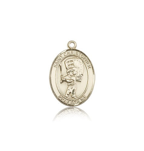 St. Christopher Baseball Medal, 14 Karat Gold, Medium