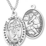 Girl's Oval Double-Sided Basketball Necklace with Saint Sebastian Back in Sterling Silver