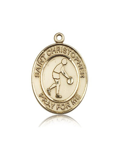 St. Christopher Basketball Medal, 14 Karat Gold, Large