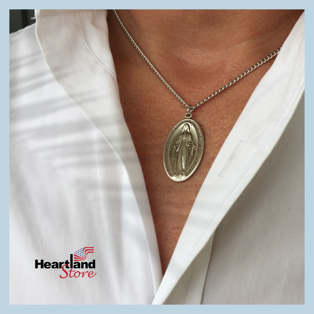 Large Men's Deluxe Sterling Silver Oval Miraculous Medal