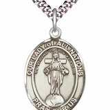 - Medal with 24" rhodium plated brass heavy curb chain with lobster clasp