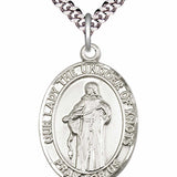 - Medal with 24" rhodium plated brass heavy curb chain with lobster clasp