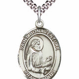 An oval shaped pendant with an image of St. Bonaventure in the center. There is a selection of chains to choose from.