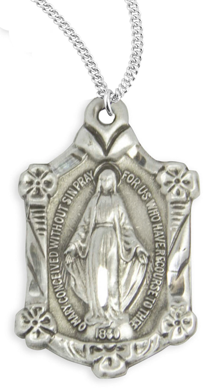 Miraculous Necklace with Flowers, Sterling Silver with Chain - 18" 1.8mm Sterling Silver Chain + Clasp
