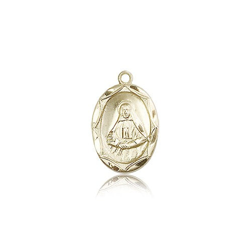 This St. Frances Cabrini Medal is made of 14 Karat Gold. The jewelry pendant is sold as pictured and does not come with a chain. All medals are gift boxed in a light blue velvet jewelry box ready for gift giving.