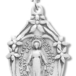 This small oval Miraculous Pendant has a unique border with 6 blossoming flowers surrounding Mary.