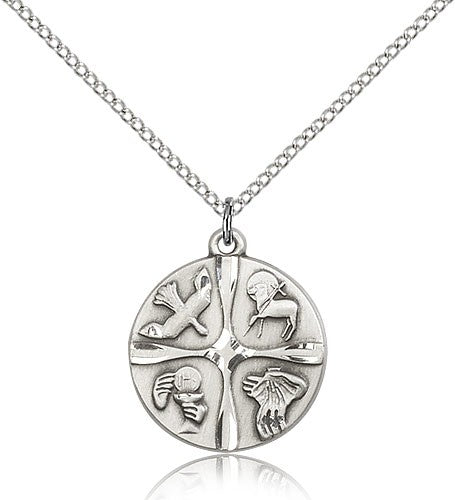 This Christian Life Medal is paired with an 18 inch sterling silver lite curb chain as pictured. All medals are gift boxed in a light blue velvet jewelry box ready for gift giving.