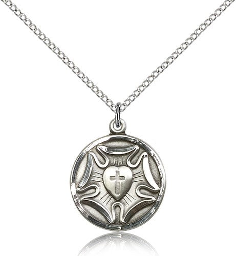 This Lutheran Medal is paired with an 18 inch sterling silver lite curb chain as pictured. All medals are gift boxed in a light blue velvet jewelry box ready for gift giving.