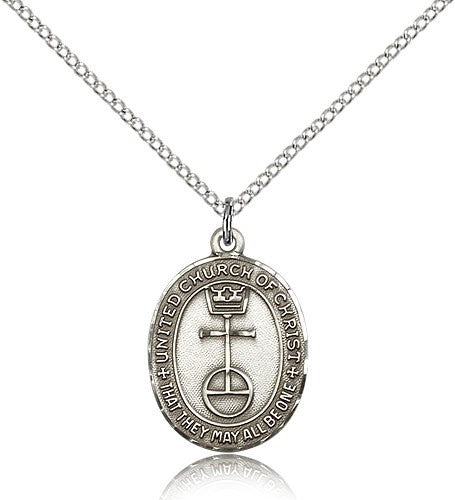 This Women's Sterling Silver United Church of Christ Medal is paired with an 18 inch sterling silver lite curb chain as pictured. All medals are gift boxed in a light blue velvet jewelry box ready for gift giving.