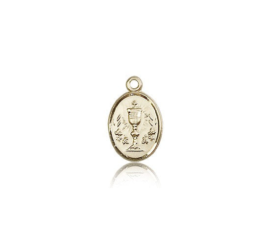 This Chalice Medal is made of 14 Karat Gold. The jewelry pendant is sold as pictured and does not come with a chain. All medals are gift boxed in a light blue velvet jewelry box ready for gift giving.
