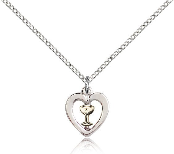 This Heart Chalice Medal is paired with an 18 inch sterling silver lite curb chain as pictured. All medals are gift boxed in a light blue velvet jewelry box ready for gift giving.