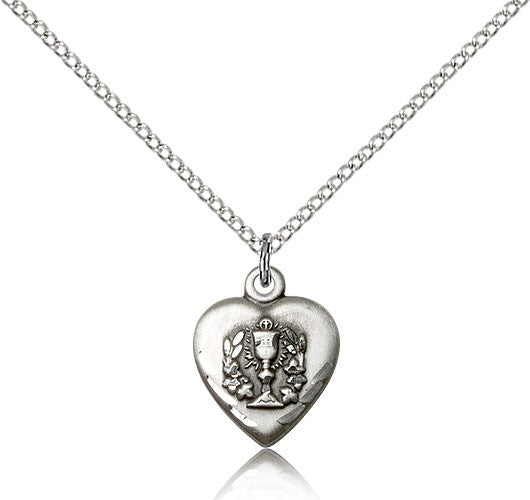 Heart Communion Medal, Sterling Silver - 18" 1.2mm Sterling Silver Chain + Clasp