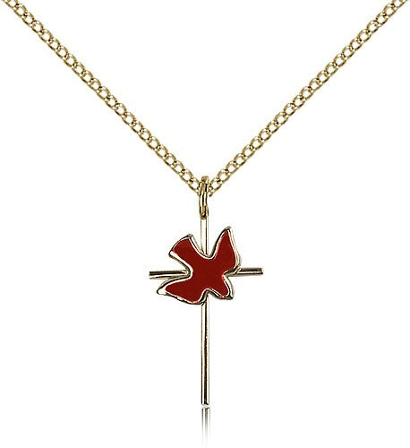 This Cross Holy Spirit Medal is paired with an 18" gold filled light curb chain as pictured. All medals are gift boxed in a light blue velvet gift box ready for gift giving.