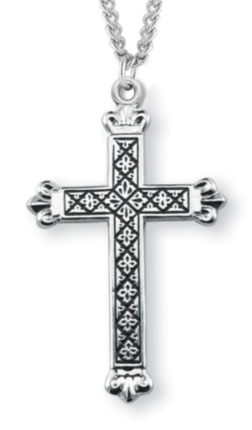 Cross Necklace Blackened Etched, Sterling Silver with Chain