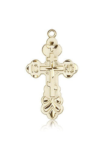 This Cross Pendant is made of 14 Karat Gold. The jewelry pendant is sold as pictured and does not come with a chain. All medals are gift boxed in a light blue velvet jewelry box ready for gift giving.