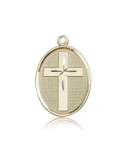 This Cross Pendant is made of 14 Karat Gold. The jewelry pendant is sold as pictured and does not come with a chain. All medals are gift boxed in a light blue velvet jewelry box ready for gift giving.