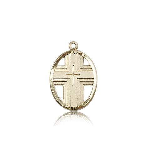 This Cross Pendant is made of 14 Karat Gold. The jewelry pendant is sold as pictured and does not come with a chain. All medals are gift boxed in a light blue velvet jewelry box ready for gift giving.