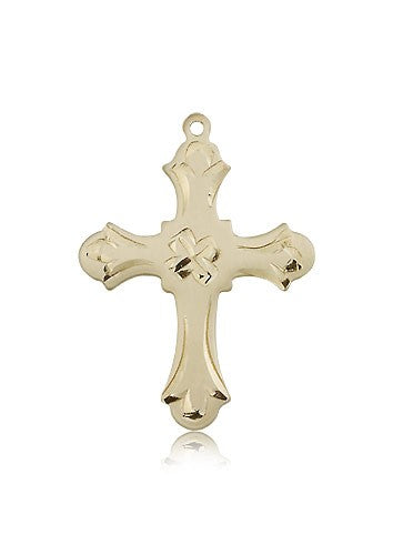 This Cross Pendant is made of 14 Karat Gold. The jewelry pendant is sold as pictured and does not come with a chain. All medals are gift boxed in a light blue velvet jewelry box ready for gift giving.