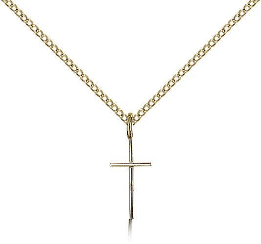 This Cross Pendant is paired with an 18" gold filled light curb chain as pictured. All medals are gift boxed in a light blue velvet gift box ready for gift giving.