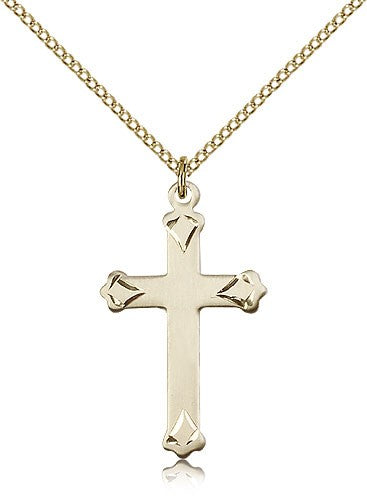 This Cross Pendant is paired with an 18" gold filled light curb chain as pictured. All medals are gift boxed in a light blue velvet gift box ready for gift giving.