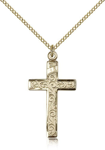 This Cross Pendant is paired with an 18" gold filled light curb chain as pictured. All medals are gift boxed in a light blue velvet gift box ready for gift giving.