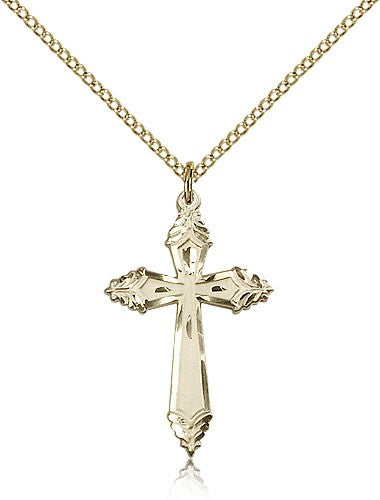 This Cross Pendant is paired with an 18" gold filled light curb chain as pictured. All medals are gift boxed in a light blue velvet gift box ready for gift giving.