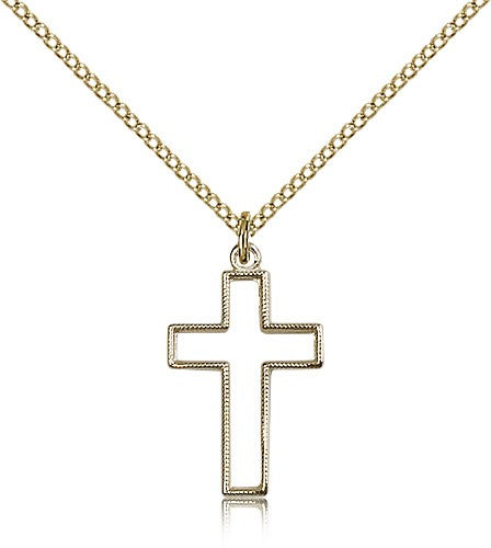 This Cross Pendant is paired with an 18" gold filled light curb chain as pictured. All medals are gift boxed in a light blue velvet gift box ready for gift giving.