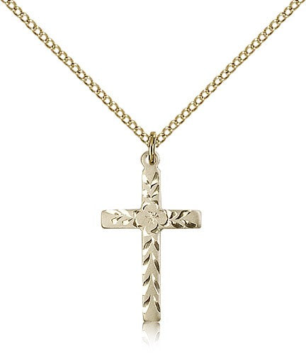 This Cross Pendant is paired with an 18" gold filled light curb chain as pictured. All medals are gift boxed in a light blue velvet gift box ready for gift giving.
