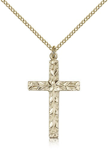 This Cross Pendant is paired with an 18" gold filled light curb chain as pictured. All medals are gift boxed in a light blue velvet gift box ready for gift giving.