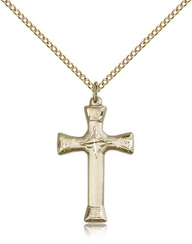 This Cross Pendant is paired with an 18" gold filled light curb chain as pictured. All medals are gift boxed in a light blue velvet gift box ready for gift giving.