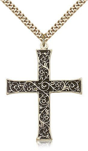 Cross Pendant, Gold Filled - 24" 2.4mm Gold Plated Endless Chain